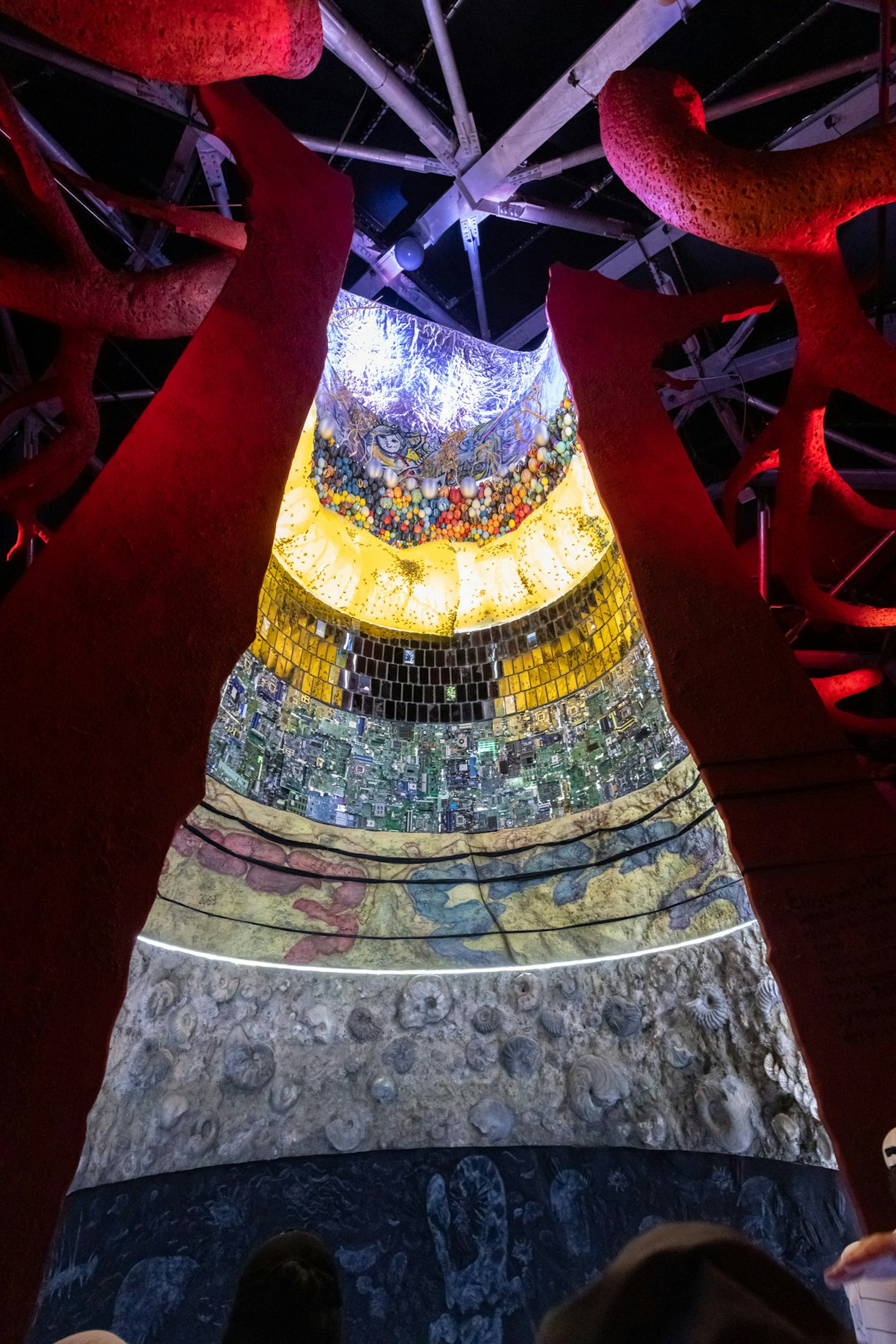 樹の下には底の見えない海=生命のいない世界が広がる。樹木の内部は層に分かれ、見上げるにつれて地球のいのちが進化していく