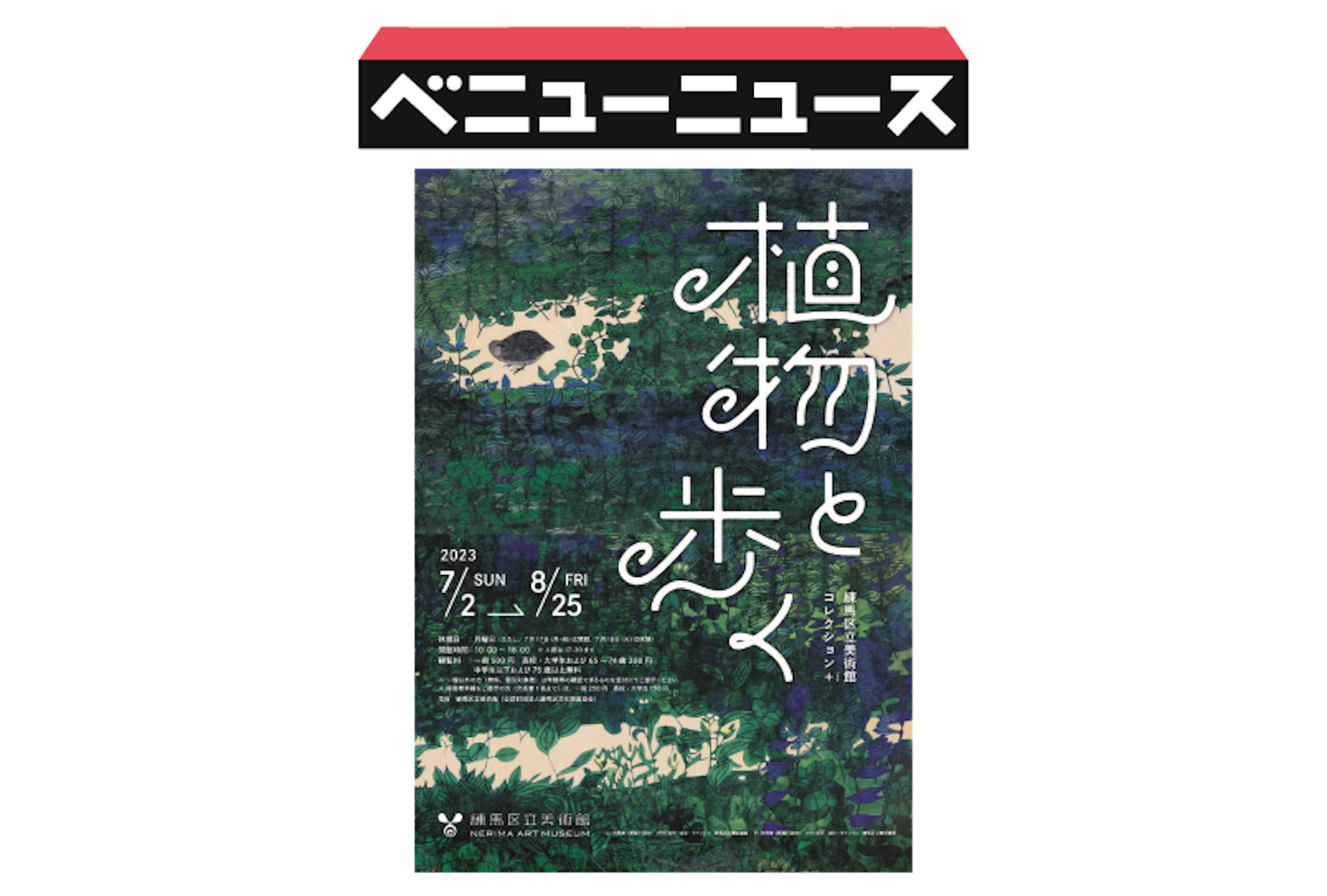 2023年7月2日(日)~8月25日(金)、練馬区立美術館で「植物と歩く」が開催中です。洋画、日本画、ガラス絵、版画、彫刻、和本、植物標本などを通して、作者が植物のどのような部分に焦点を当てて作品を制作したのか、植物がどのように作家を触発したのかを探る展覧会です。