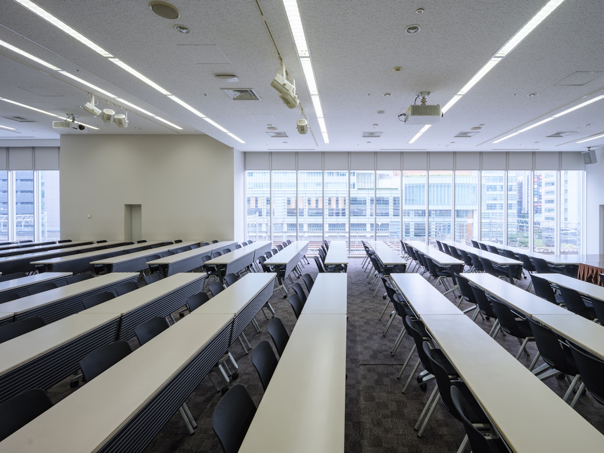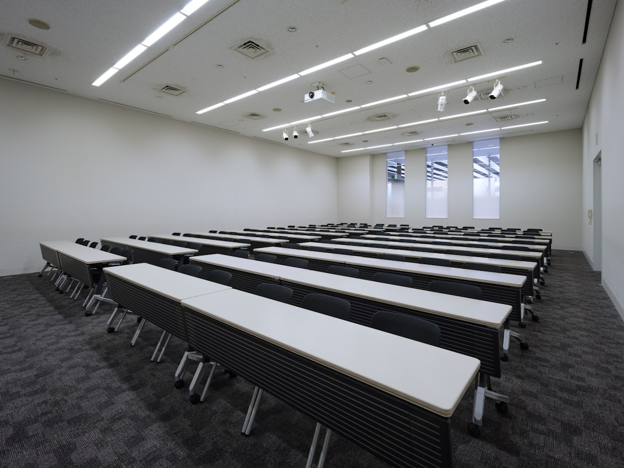 人数の可変式利用は、参加者の人数に応じて部屋のレイアウトや使用スペースを調整できるため、例えば新入社員研修やグループ研修などでの活用に便利です。200人規模のマナー研修の後に部署ごとに分かれて研修を行うといった用途にも適しています。人数規模や特性に応じて環境をカスタマイズできるため、より効果的なコミュニケーションと学習を促進できます。また、大型搬入や展示会の利用も可能で、広さ的には十分なスペースを持っています。