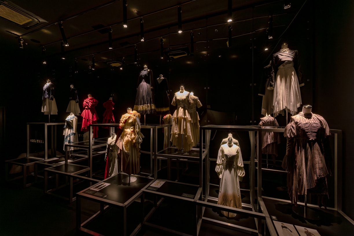 MV や歌番組などで着用した衣装が並ぶ第1章のゾーン