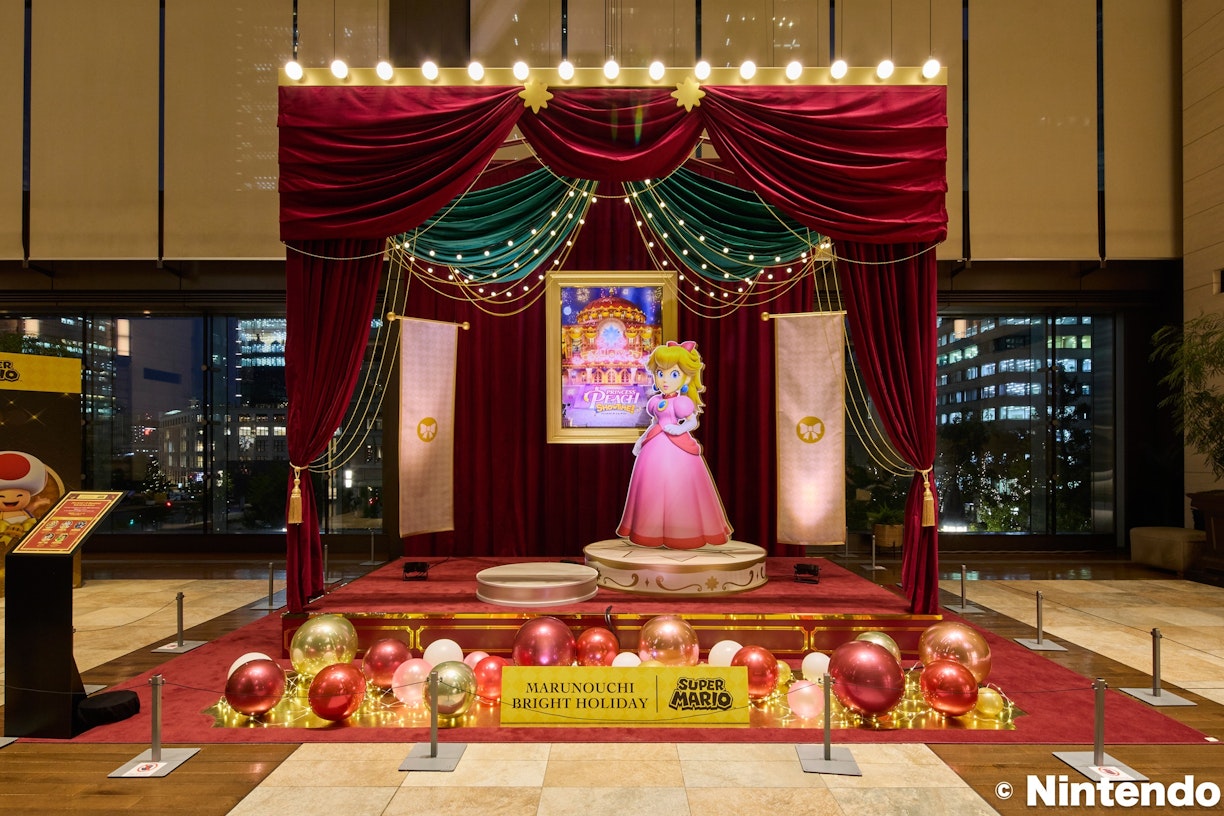 新丸ビルでは、劇場風ステージを模したフォトスポット「プリンセスピーチ Showtime! キラメキフォトスポット」が設置されます。ピーチと並んで写真撮影ができるこのスポットは、ファミリーや友人同士、さらには一人でも楽しめる特別な体験です。