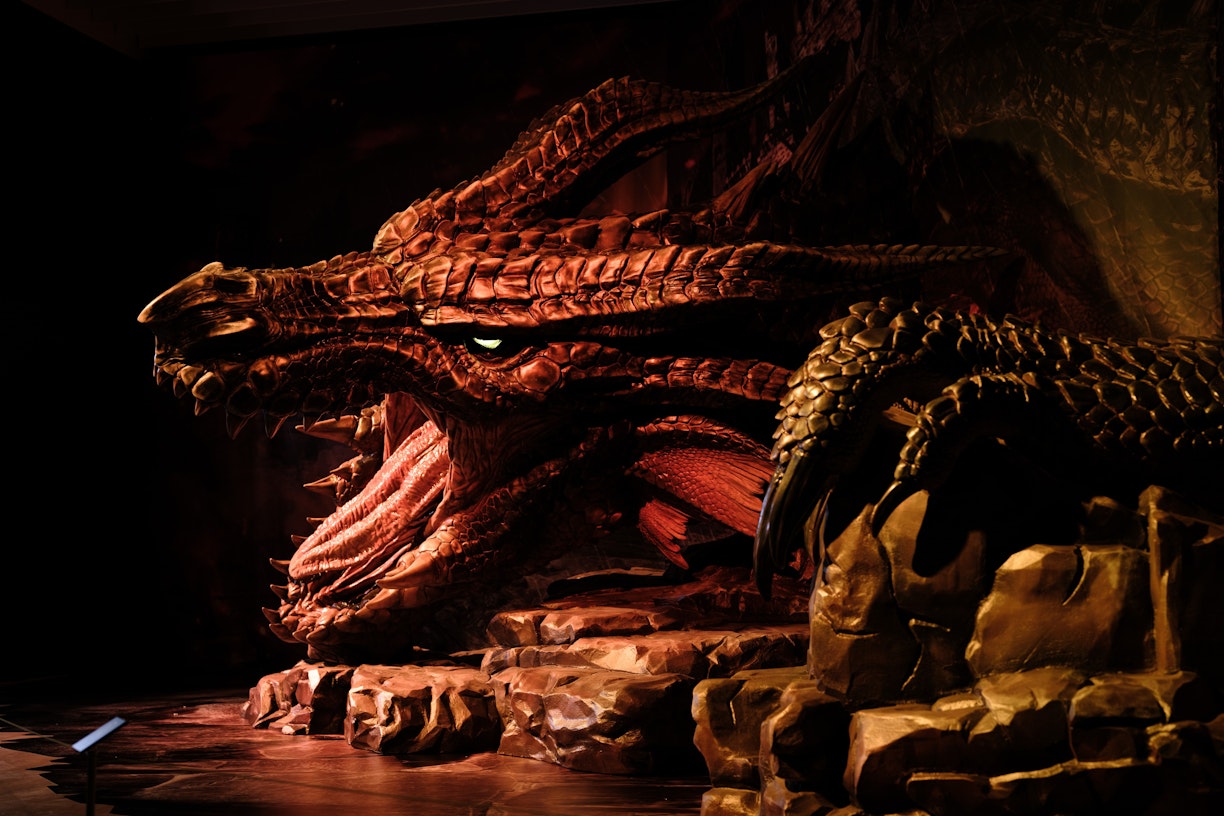 黒龍ミラボレアスの狩猟を再現した展示「黒龍襲来」。トリックアートの組み合わせで、シュレイド城での迫力の狩猟を再現