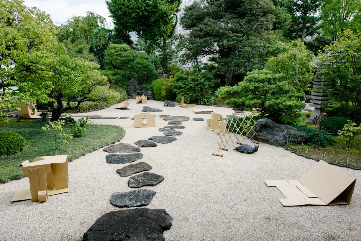 寛永寺の庭に置かれた段ボール箱は、後にその箱自体が人格を持ち(物質的に変化していく姿の見立て)、庭に佇み、これまでの時間と現在とをつなぐ彫刻作品となり、VR空間でも同時に展示される。日比野克彦《ALL TOGETHER NOW (Transforming box series)》(2022年) 撮影:池ノ谷侑花(ゆかい)