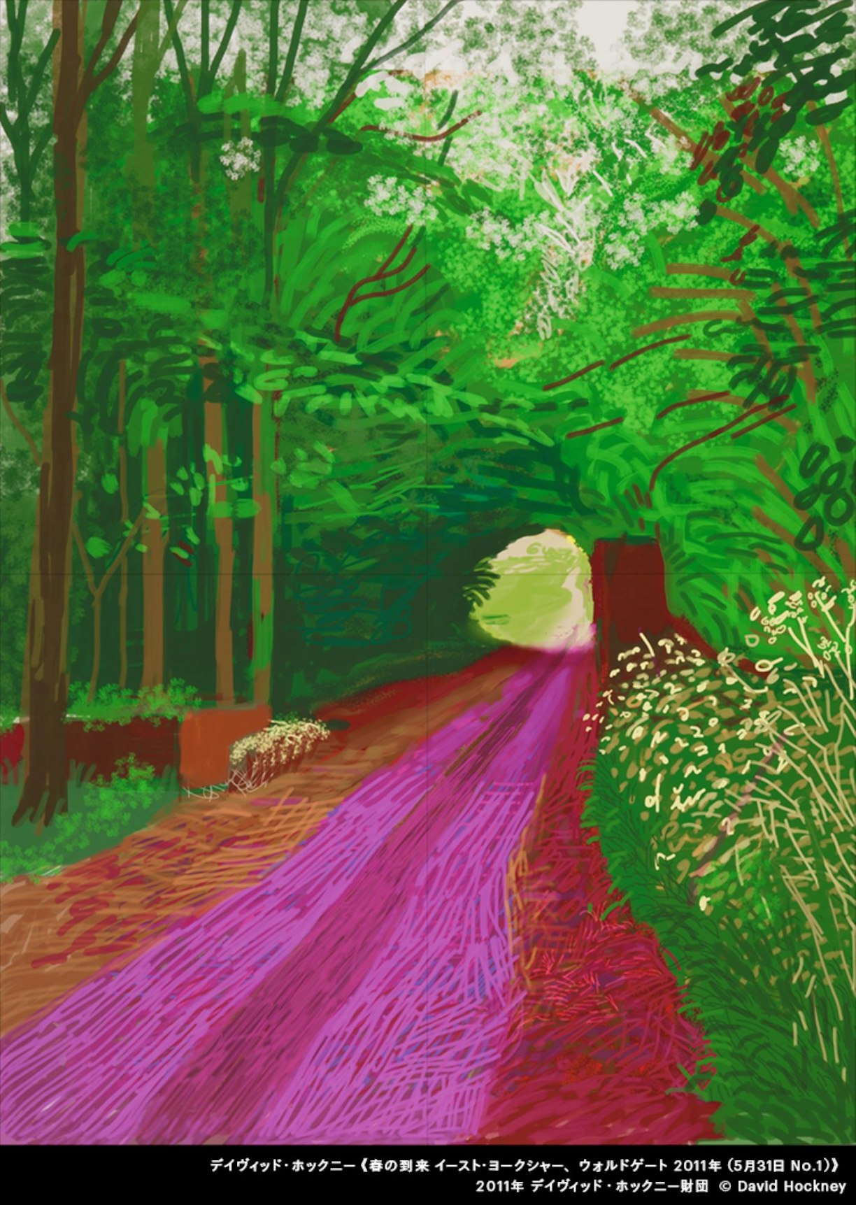 大型の油彩画とiPadドローイングで構成された《春の到来 イースト・ヨークシャー、ウォルドゲート2011年》シリーズ。2010年4月の発売と同時に入手したiPadは、ホックニーが新境地を開く一助になった