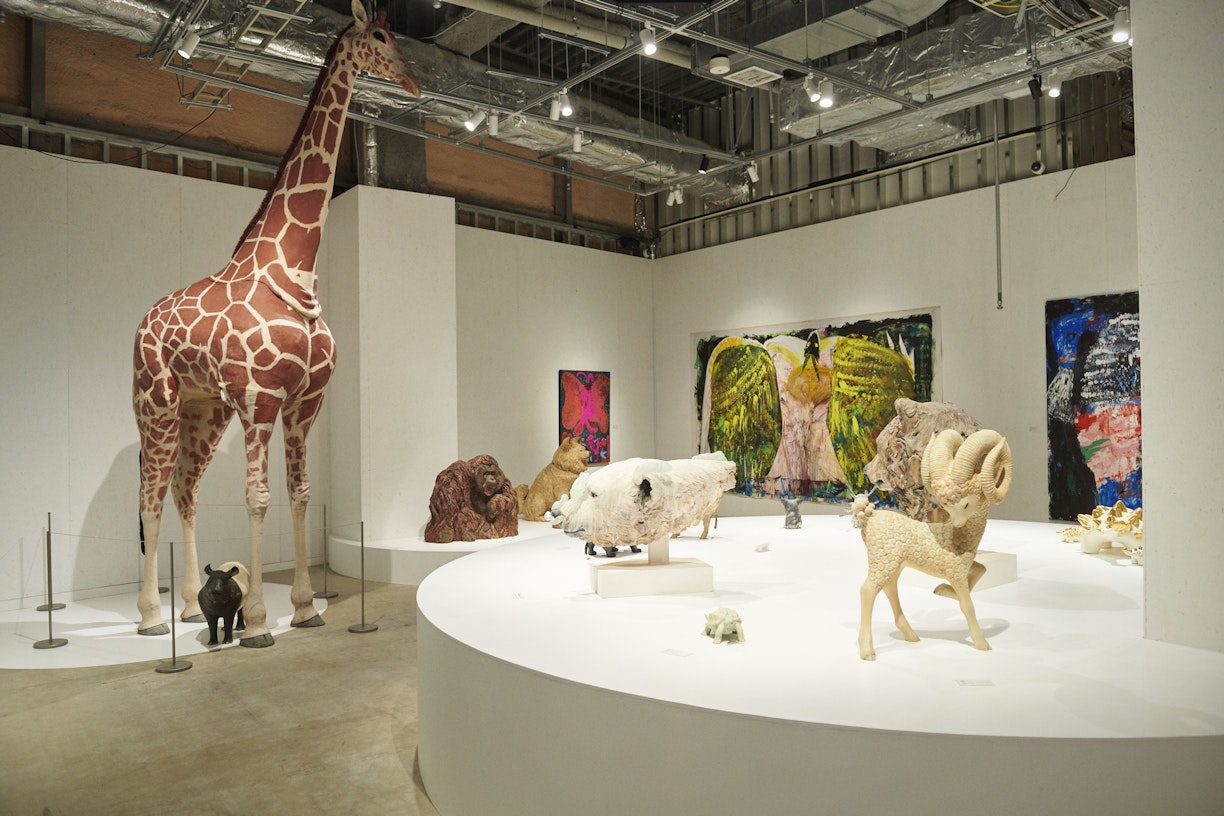 そして展覧会のクライマックスとなるセクション「ユートピア」では、土屋仁応、ミロコマチコ、名和晃平ら9名の現代アーティストによる立体作品や絵画約30点を展示。原寸大でつくられた作品や想像上の生きものや擬人化された動物たちが空間を彩り、人間だけに与えられた“創造”の力がいかに豊かであるかを体感させてくれます。