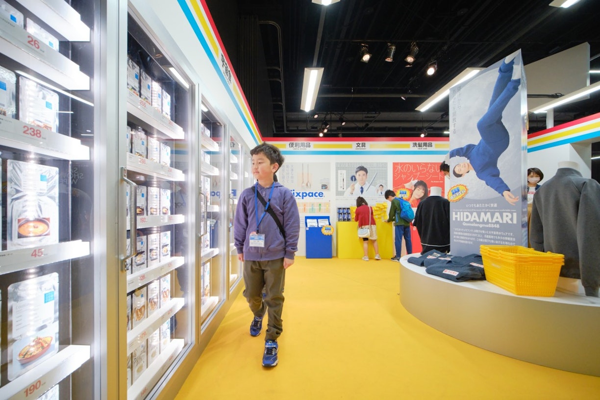 月面コンビニでは、月でのくらしを支えてくれるアイテムを陳列(一部商品はショップエリアで購入可能)