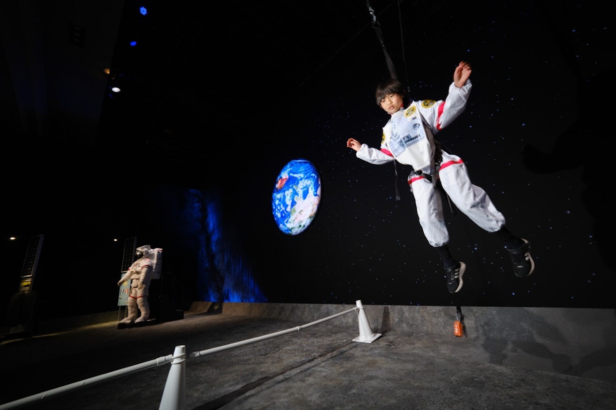 「月面ゾーン(基地外)」では、月から見える地球の姿や、月の砂(レゴリス)におおわれた月面などを再現。専用の衣装に着替えて月の重力を疑似体験できるほか、実際に月着陸実証機 SLIM(スリム)に乗って実際に月へ行く予定の月面ロボット「SORA-Q(ソラキュー)」と実物と同じサイズのモデルの操作など、様々なミッションを体験できます。